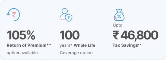• +This plan offers pure risk premium option under Life Option and return of premium benefit under Life Plus Option along with other benefits. Please refer sales brochure for complete details.